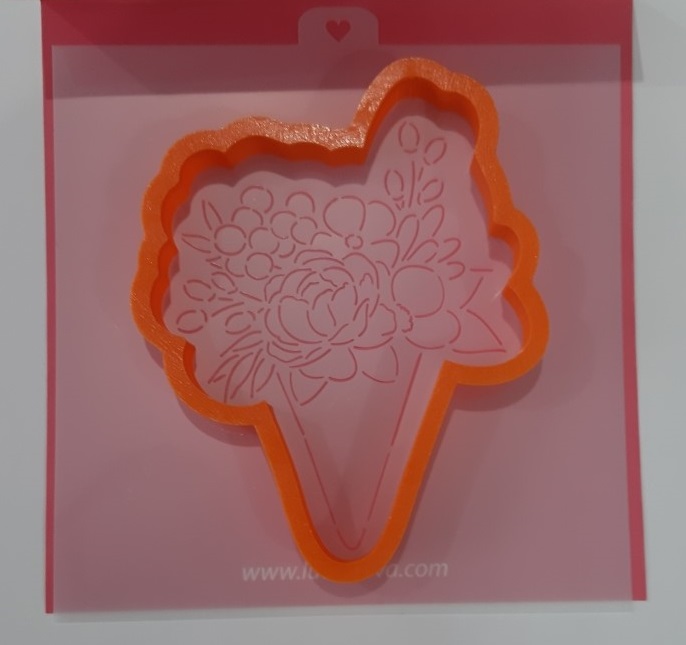 Резак пластиковый для печенья Букет в кульке + трафарет